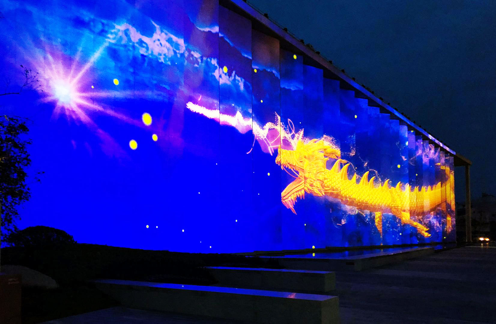 開(kāi)放當(dāng)晚,斥資數(shù)千萬(wàn)元打造的3D夢(mèng)幻燈光秀震撼開(kāi)演。該表演由美盛地產(chǎn)集團(tuán)邀請(qǐng)國(guó)際頂尖專業(yè)團(tuán)隊(duì),以場(chǎng)館外墻為主體量身定制。配合著震撼律動(dòng)的音樂(lè),燈光秀以啟迪、成長(zhǎng)、化蝶、騰龍四個(gè)篇章的3D魔變,為現(xiàn)場(chǎng)市民奉上了一場(chǎng)精彩的視聽(tīng)盛宴。
