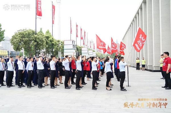 首頁(yè) > 新聞中心 > 公司新聞6月5日上午,美盛·教育港灣營(yíng)銷中心人潮涌動(dòng),一場(chǎng)士氣激昂的誓師大會(huì)在此啟幕!營(yíng)銷精英們摩拳擦掌、斗志昂揚(yáng)。在這個(gè)熱情澎湃的季節(jié),美盛地產(chǎn)集團(tuán)全體營(yíng)銷精英共同宣誓,勠力同心,決戰(zhàn)年中,贏戰(zhàn)2019。