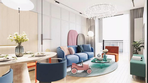 兩臥與客廳均朝南,滿足全家人的采光需要;客廳連接觀景陽臺(tái),視野開闊,全明敞亮;同時(shí)專門設(shè)置了兒童娛樂烹飪照看區(qū),人性化設(shè)計(jì)盡顯生活美好。