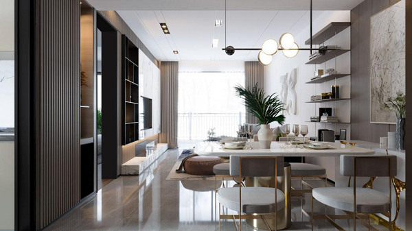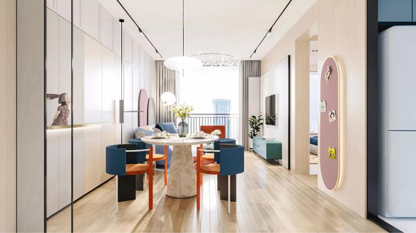 以現(xiàn)代人文的方式,交織出風(fēng)華、美和韻律,將它們恰如其分地安置在生活空間里。在建面約138㎡四室兩廳兩衛(wèi)的戶型里,整個(gè)空間低調(diào)而雅致,不失奢華美感。270度的觀景陽臺(tái),讓四季之景相伴每一個(gè)平凡日常。