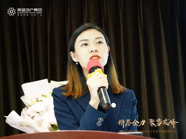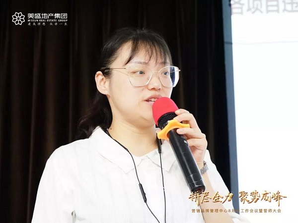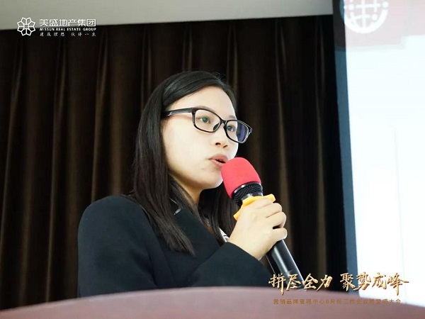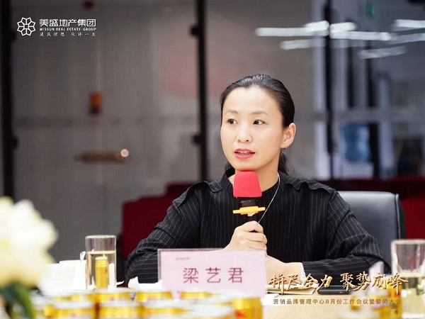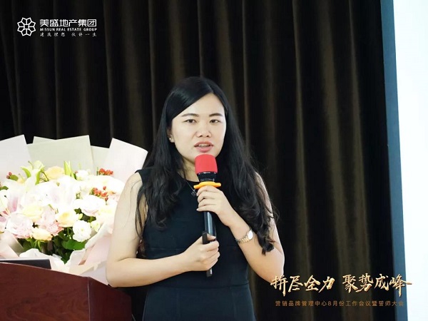 美盛地產(chǎn)集團(tuán)營銷管理中心總經(jīng)理梁藝君女士在會議上表示:"面臨著8月份新目標(biāo)以及年終業(yè)績目標(biāo),各項目營銷負(fù)責(zé)人,在集團(tuán)高戰(zhàn)略、快發(fā)展的目標(biāo)下,要時刻保持對業(yè)績的敬畏之心,敏感洞察當(dāng)前房地產(chǎn)市場。"