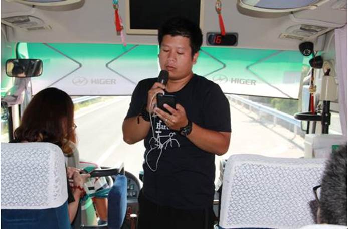 旅途之中,并不枯燥,相互贊美、歌曲接龍、擊鼓傳花各個(gè)節(jié)目讓旅程中的大巴上歡聲笑語(yǔ)。