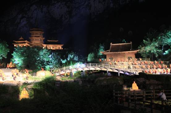 菩提本無(wú)樹(shù),明鏡亦非臺(tái)。本來(lái)無(wú)一物,何處惹塵埃。晚餐結(jié)束后,一場(chǎng)絕美的視聽(tīng)盛宴在等著大家,晚上8點(diǎn)10分禪宗少林音樂(lè)大典開(kāi)演,大家一起傾聽(tīng)禪樂(lè),感受少林文化。光樂(lè)、琴音、歌聲、吟詠,將佛學(xué)禪宗文化闡釋的淋漓盡致,大家深深的被震撼并陶醉其中。