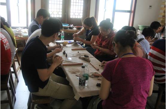 中午大家體驗(yàn)了過(guò)堂素齋,午休過(guò)后大家接著體驗(yàn)了陶藝和禪茶。
