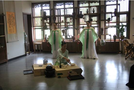 禪茶表演,由茶藝師細(xì)膩的表演了信陽(yáng)毛尖、烏龍茶和鐵觀音等茶的不同特性和沖泡特點(diǎn)。