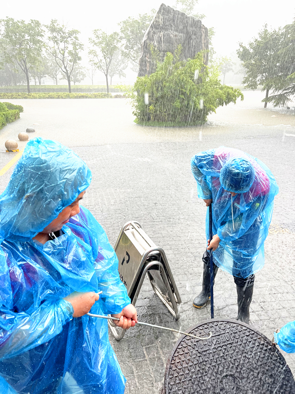 物業(yè)人員提前檢查排污水泵,保證重要位置(發(fā)電機房、水泵房、配電房)污水泵自主運行;及時對化糞池、污水井、小區(qū)樓頂排水口等進行清理以防阻塞;針對設備機房及低于小區(qū)水平面標高的設施設備進行重點監(jiān)控(地下室、電梯井),早晚溫馨提醒業(yè)主關閉門窗,風雨天出行注意安全等。