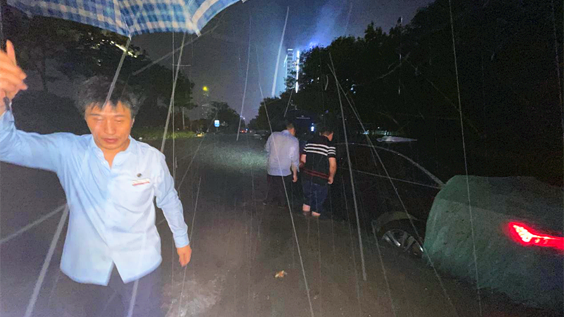 7月20日當晚,面對暴雨汛情突發(fā),美盛物業(yè)迅速集結各項目工作人員成立應急小組,全員24小時堅守在一線救災抗災。當日22點,物業(yè)服務中心接到業(yè)戶求助電話,車輛涉水拋錨美盛中心外1公里處,情況緊急。美盛物業(yè)項目負責人迅速集結秩序經理、消防主管、中心工程經理等趕往現(xiàn)場,以最短時間到達業(yè)主身邊,幫業(yè)戶推車至安全地區(qū)。