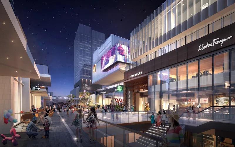社區(qū)內(nèi)打造以文化教育為主題的線性特色景觀街道,整合文化設(shè)施、教育機構(gòu)、公園及軌道站點,形成寓教于樂的“知學之徑”,依托知學之徑打造一條貫穿場地、免于車流的上下學學童無憂歸家路。縱享約100萬方商業(yè),涵蓋旗艦式商業(yè)、街區(qū)式商業(yè)、生活情景商業(yè)等多維業(yè)態(tài)。