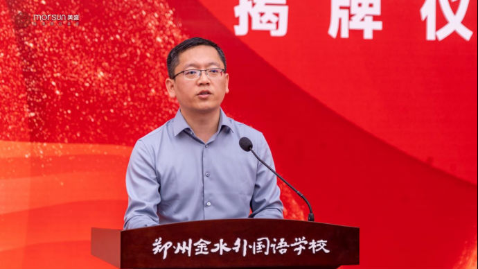 在揭牌儀式上,鄭州市金水區(qū)教育局副局長胡培林在致辭中說,近年來,在市政府、市教育局、區(qū)政府的堅強領(lǐng)導(dǎo)下,金水教育發(fā)展日新月異,取得了突破性進展。美盛集團勇?lián)鐣?zé)任,高規(guī)格承建鄭州金水外國語學(xué)校,自去年9月投用以來,呈現(xiàn)出高起點、高標(biāo)準辦學(xué)的發(fā)展態(tài)勢,得到了廣大學(xué)生家長的一致認可,有效提升了轄區(qū)群眾的教育獲得感、幸福感。