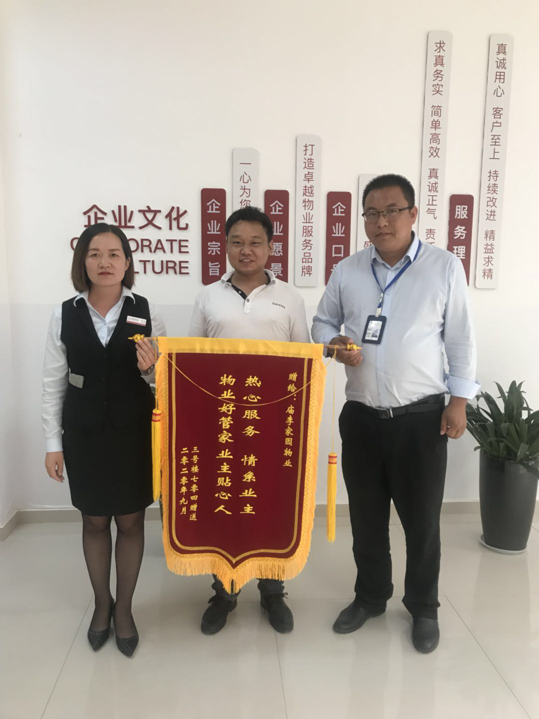 廟李家園東苑:熱心服務(wù)情系業(yè)主 一面錦旗深表謝意