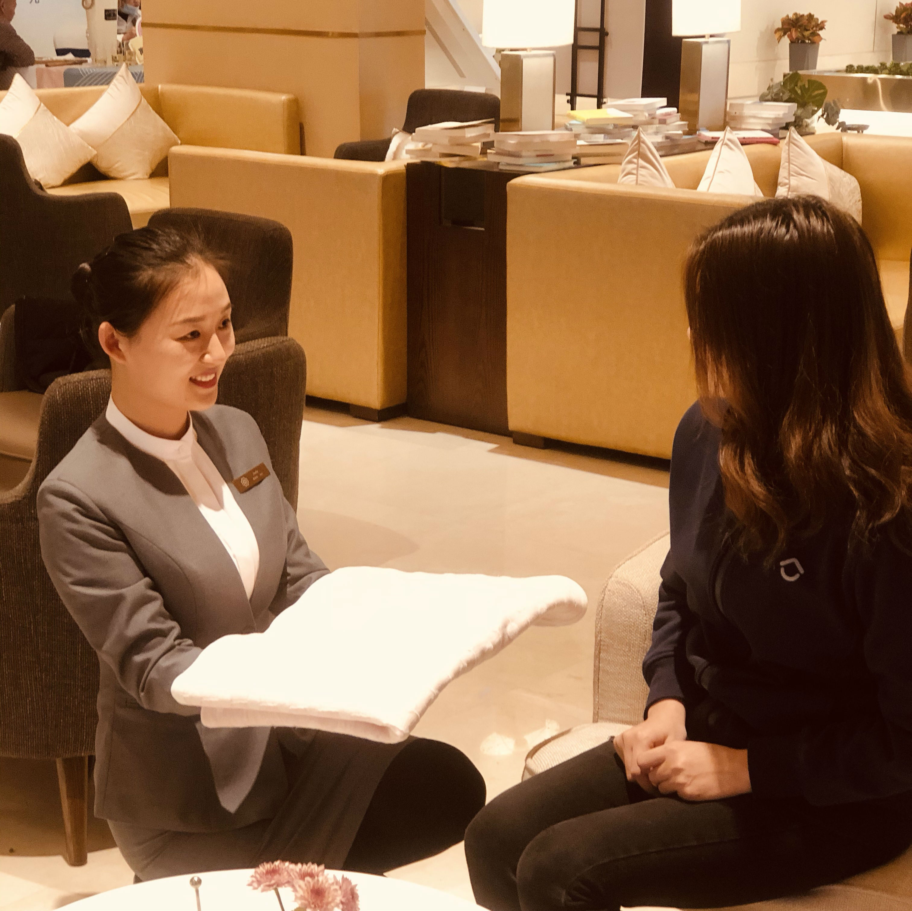 一次客服人員給客戶遞送飲品時(shí),發(fā)現(xiàn)一位女士捂著肚子,聲音低沉,習(xí)慣性的詢問了幾句,得知該女士身體有些不適,于是我們的客服小姐姐立刻給客戶沖了一杯暖心紅糖姜茶,并為客戶披上了搭毯,女士非常感動,不停的贊美我們客服小姐姐心細(xì)。