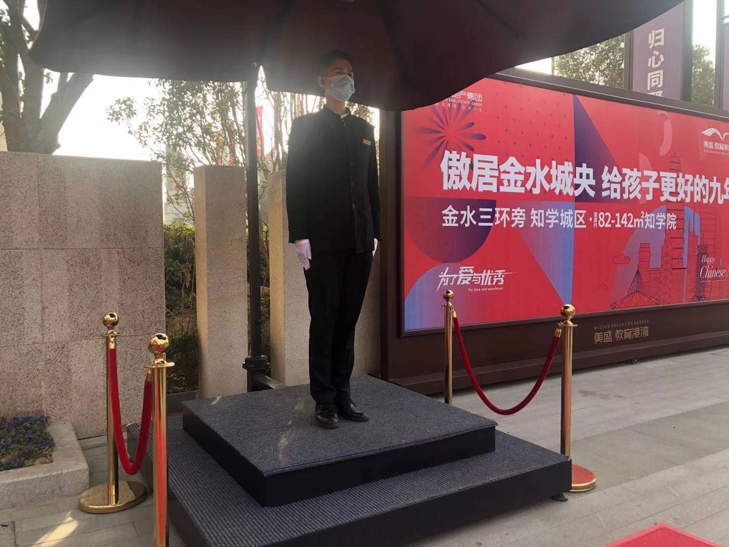 走近教育港灣營銷中心停車場(chǎng),一個(gè)身穿工裝帥氣的大男孩就會(huì)出現(xiàn)在您的眼簾中,挺拔的軍姿,標(biāo)準(zhǔn)的敬禮再加上一句“ 您好,歡迎參觀美盛教育港灣! ”