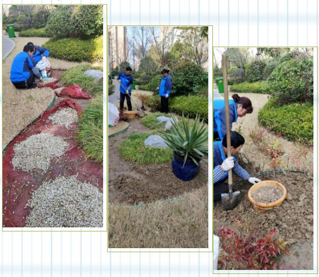 一次園區(qū)巡查,吳大姐注意到小區(qū)2號樓北邊綠化帶的石子,因經(jīng)常被孩子們當(dāng)做玩具亂扔,有點(diǎn)變色,影響園區(qū)的美觀。于是帶領(lǐng)員工將變色的石子清除,秉持環(huán)保和節(jié)約理念,用平時收集的花盆栽種了一些花卉,不僅使園區(qū)綠化帶煥然一新,同時也將資源利用最大化。業(yè)主每次走到這里,都會頓足觀賞半天,贊不絕口。