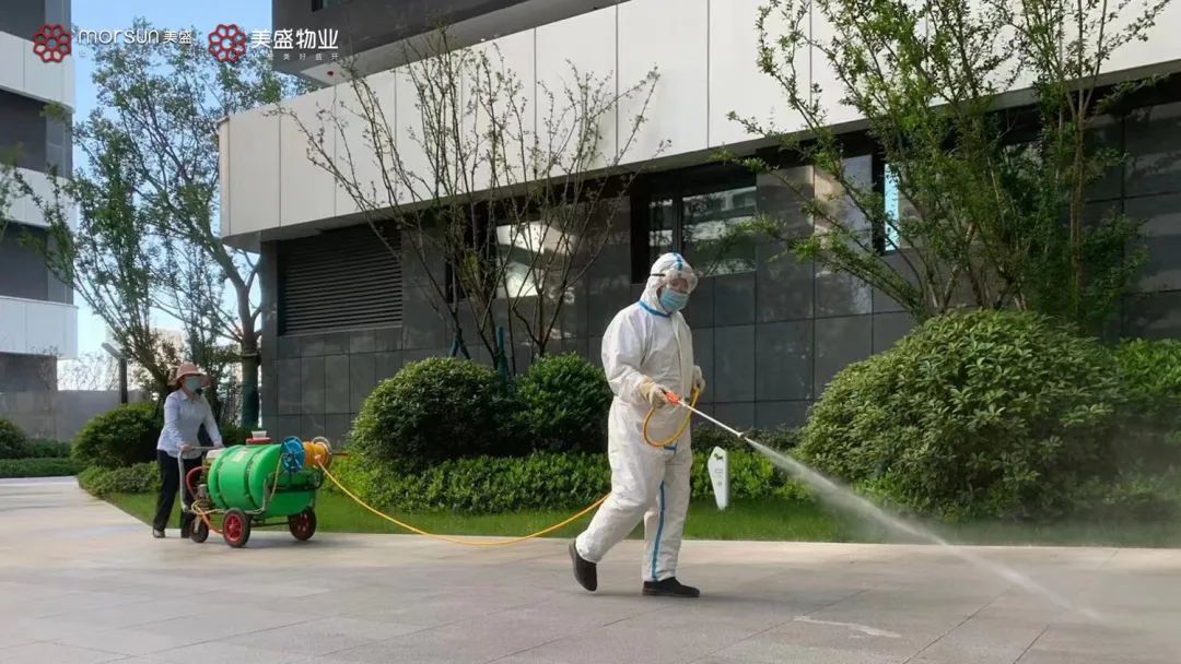 在美盛集團(tuán)的各個(gè)項(xiàng)目里,隨處可見身著防護(hù)服的消殺人員。此次疫情,美盛物業(yè)加強(qiáng)了小區(qū)重點(diǎn)部位的保潔、消殺力度。對(duì)于小區(qū)出入口、樓棟大堂以及核酸檢測區(qū)域等高頻次的活動(dòng)場所,增加消殺頻次,不遺漏任何死角。